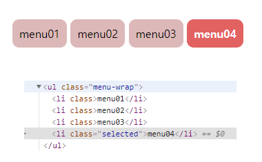 select(menuWrap, selected); //만들었던 함수 select 적용하기 (선택된 요소만 selected 클래스 더하기)