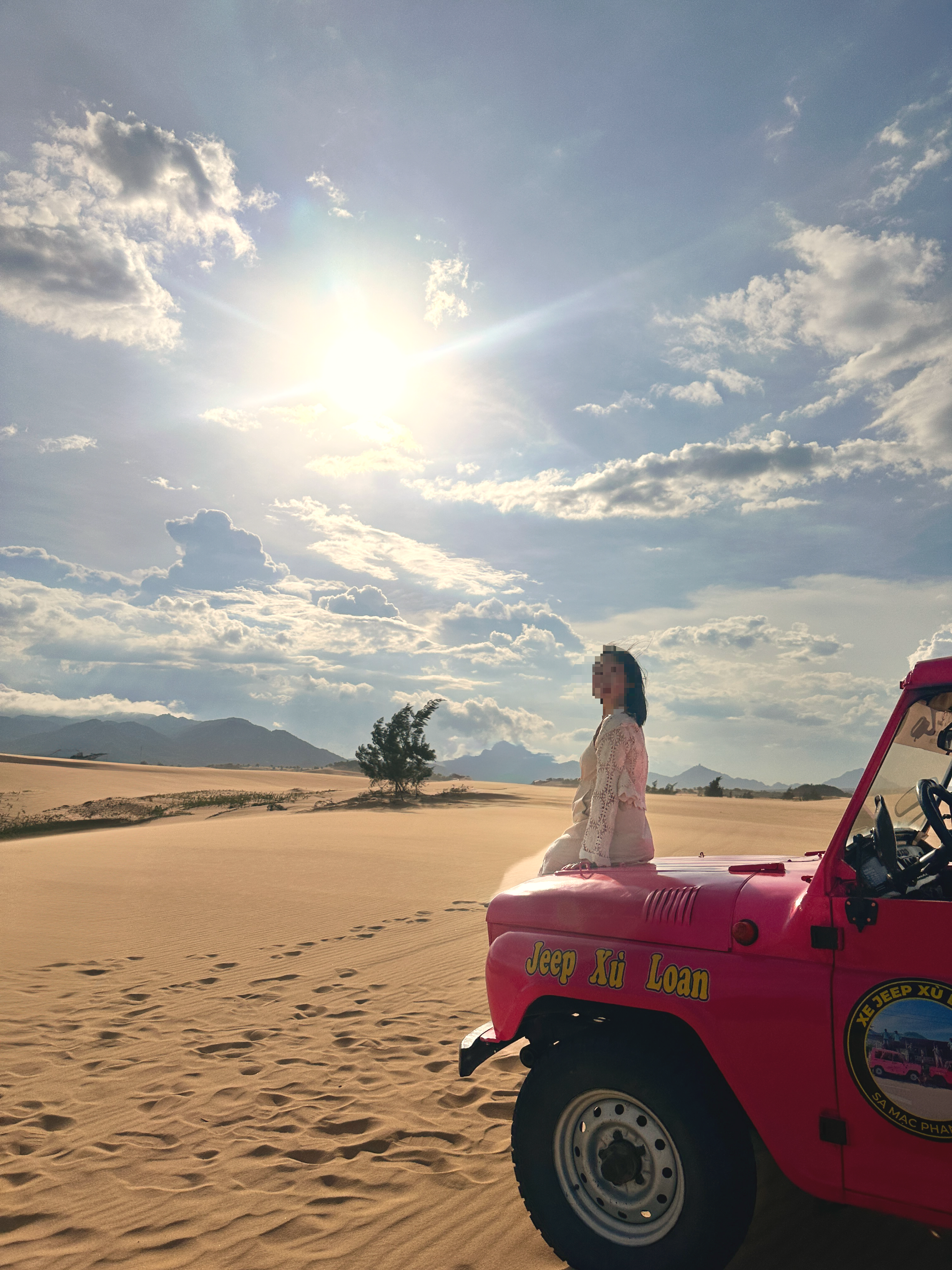 모래 바람이 많이 불어서, 온 몸에 모래가 달라 붙어요. 특히 입으로 코로 모래가 들어오는데 마스크 챙겨가서 쓰고 있다가 사진 찍을 때만 빼면 좋아요! 해가 워낙 쌔니깐 햇빛 가리는 용도로 가디건이나 바람막이 또는 양산 챙기면 좋아요. 바람 때문에 치마보다 바지를 추천하지만 저는 사진 잘 찍고 싶어서 긴치마를 선택했어요. ㅎㅎ 신발과 주머니까지 모래가 들어간다 생각하시면 돼요.