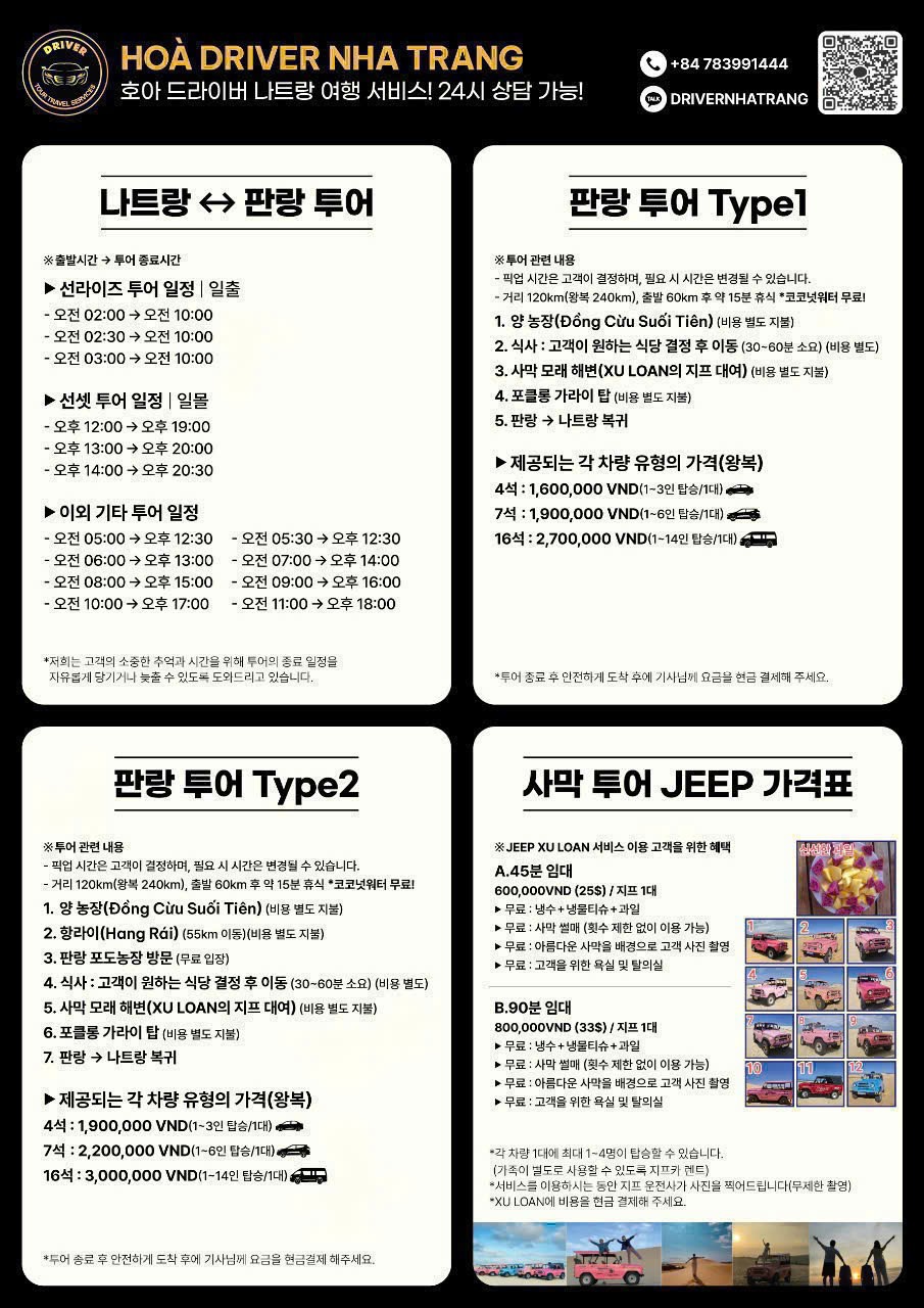 제가 선택한 현지업체는 호아 드라이버 나트랑이란 곳이에요. 카카오톡에서 DRIVERNHTRANG 으로 찾으면 쉽게 찾을 수 있어요.