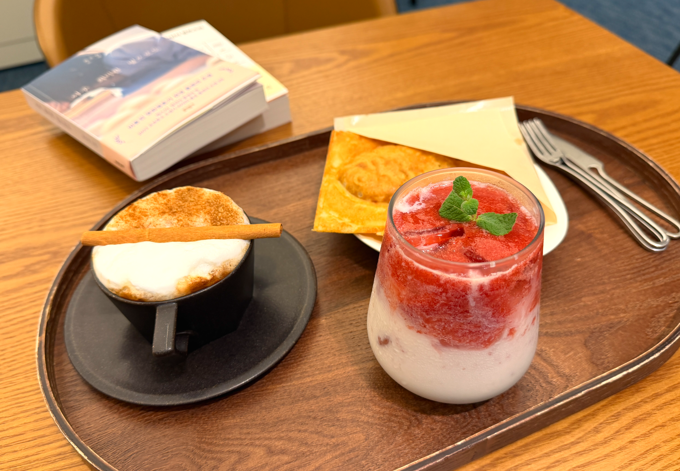 책을 읽으면서 간단히 곁들이기 좋은 메뉴들이었고, 가격대는 일반 카페와 비슷하거나 약간 높은 편이지만, 독서와 휴식을 함께 즐길 수 있는 공간 비용을 생각하면 충분히 만족스러웠습니다. 다른 분들은 빙수를 많이 드시는 것 같았어요! 요기 시그니처는 빙수인가봐요~