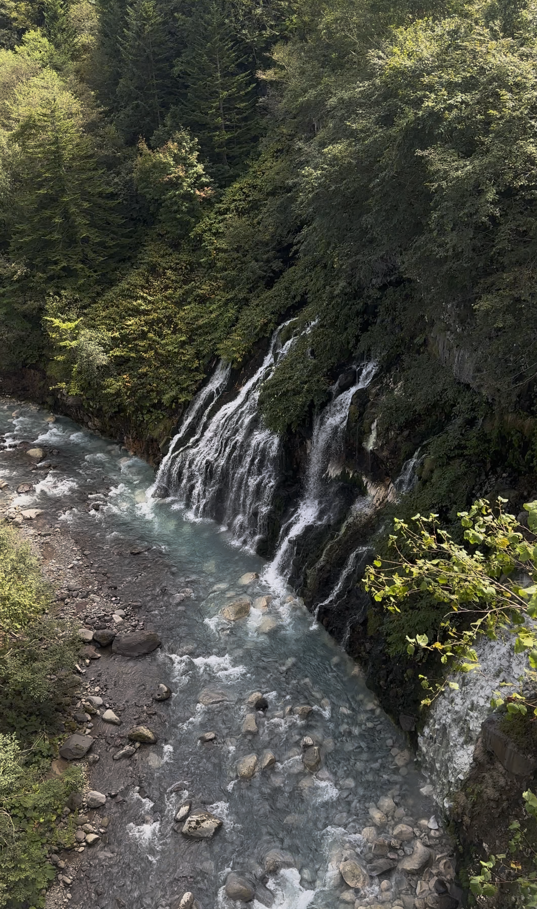 청의 호수 근처에 있는 폭포로, 흰색 물줄기가 내려오는 모습이 인상적이었어요. 폭포 바로 앞까지는 못 가고 다리 위에서 내려다봐야 하는 구조라, 시원한 폭포수를 배경으로 사진 남기는 건 조금 아쉬웠습니다. 여기도 물이 청색이라 신기했어요.