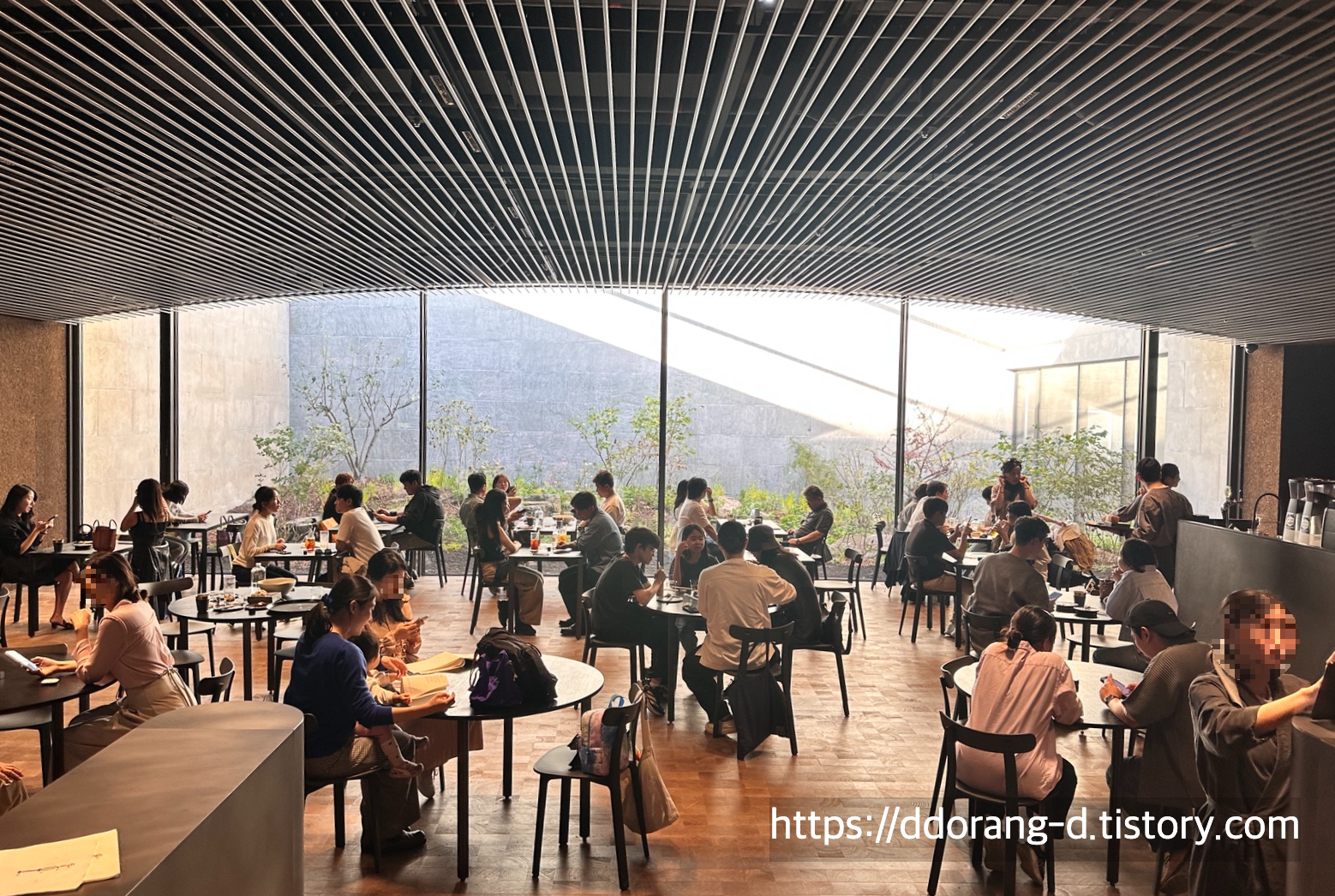 전시장 바로 옆에는 호암 카페가 있어요. 분위기도 예쁘고, 전시 관람 중 잠시 쉬어가기에 좋을 공간인데, 제가 간 날은 휴일이라 웨이팅이 많아서 앉지 못했어요. 그래도 내부 공간 구경만 해도 좋더라고요.